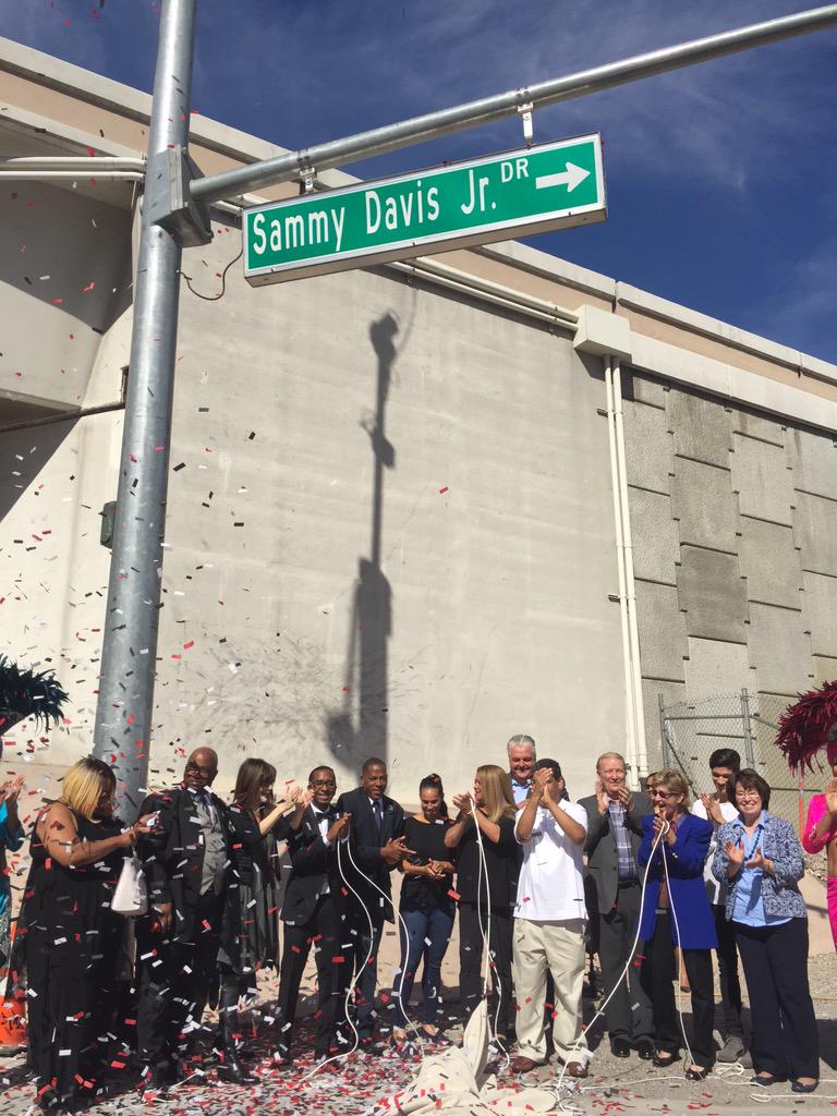 Clark County Nevada tweeted: It’s official! Industrial Road is now #SammyDavisJr Drive! #RatPackReunited #Vegas
