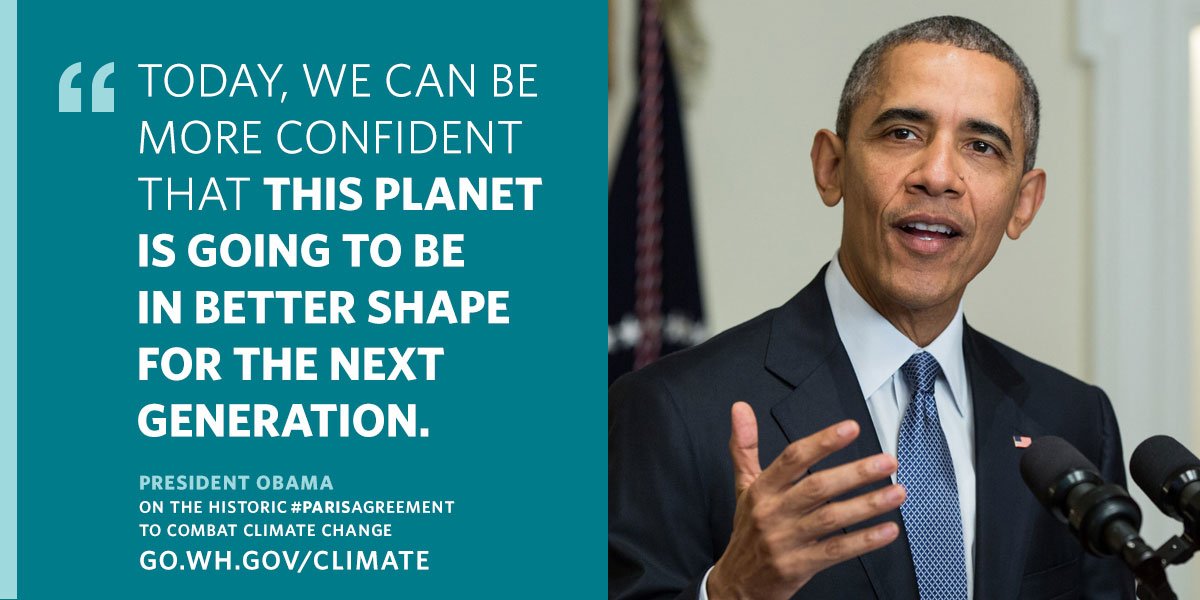 The White House tweeted: Today was a good day for the planet → #ParisAgreement #ActOnClimate